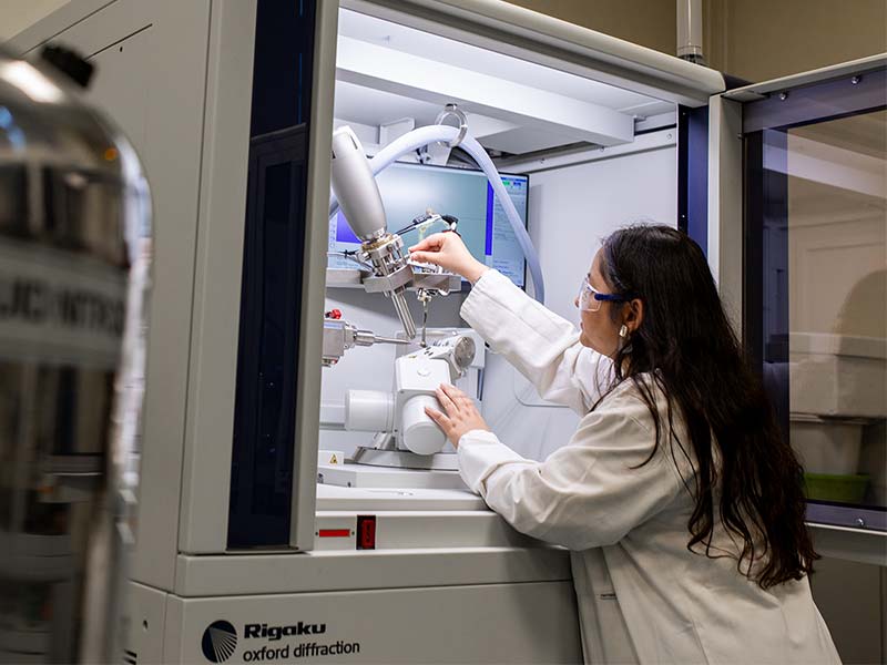 In the final year of our Masters programmes, you'll undertake a research project in one of our cutting-edge research laboratories. Here, you'll work alongside research students and staff on the latest scientific advancements, utilising state-of-the-art analytical facilities, including NMR spectroscopy, mass spectrometry and X-ray crystallography.